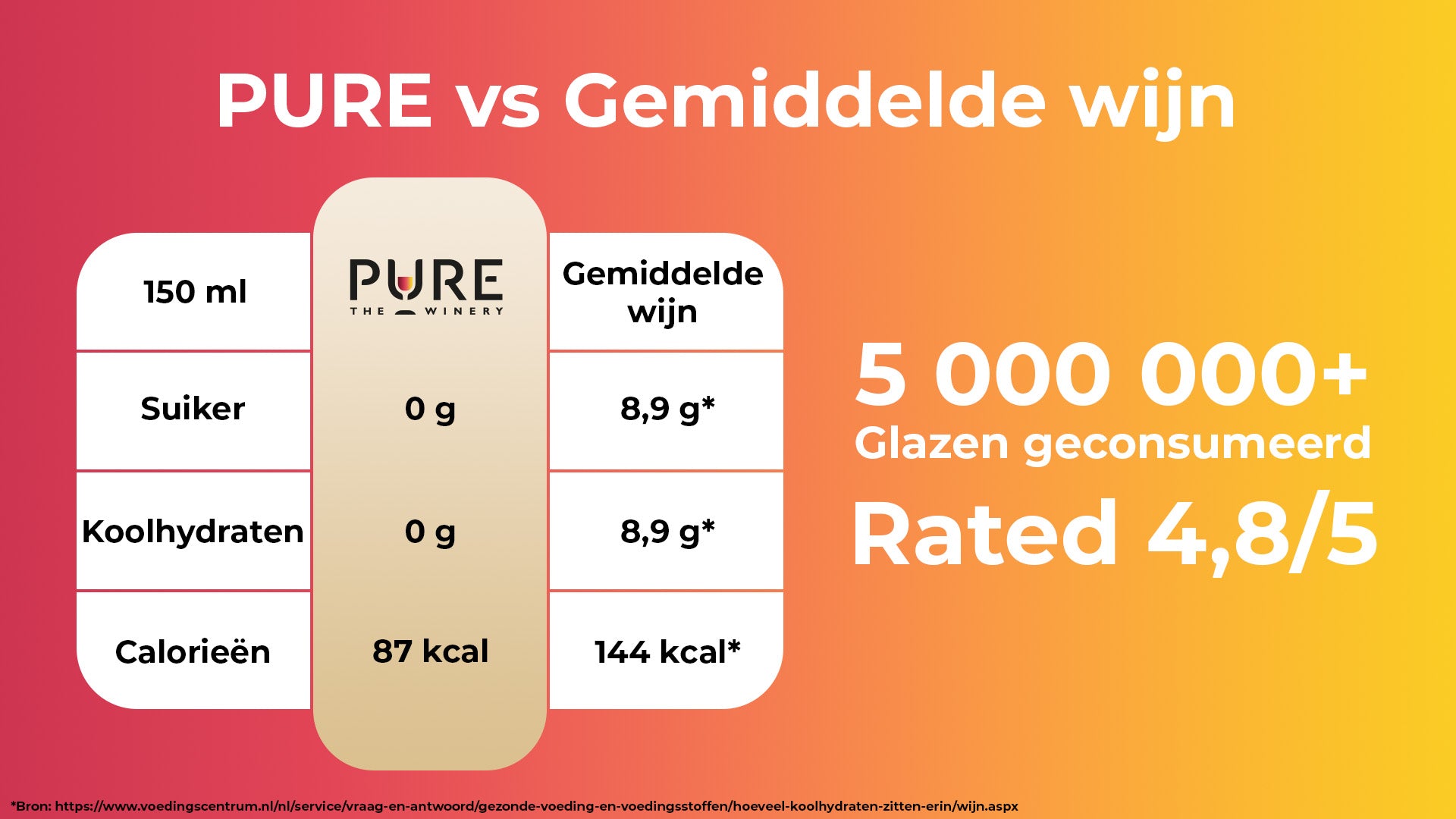 Die für PURE verwendeten Trauben werden sorgfältig ausgewählt und zum richtigen Zeitpunkt gepflückt, wenn der größte Teil des Zuckers in der Traube zu Alkohol vergären kann. Der Zucker, der nicht zu Alkohol vergären kann, ist zu diesem Zeitpunkt in der Traube nur minimal vorhanden. Restzucker werden durch eine einzigartige und 100 % natürliche Fermentationsmethode vollständig in Alkohol umgewandelt.